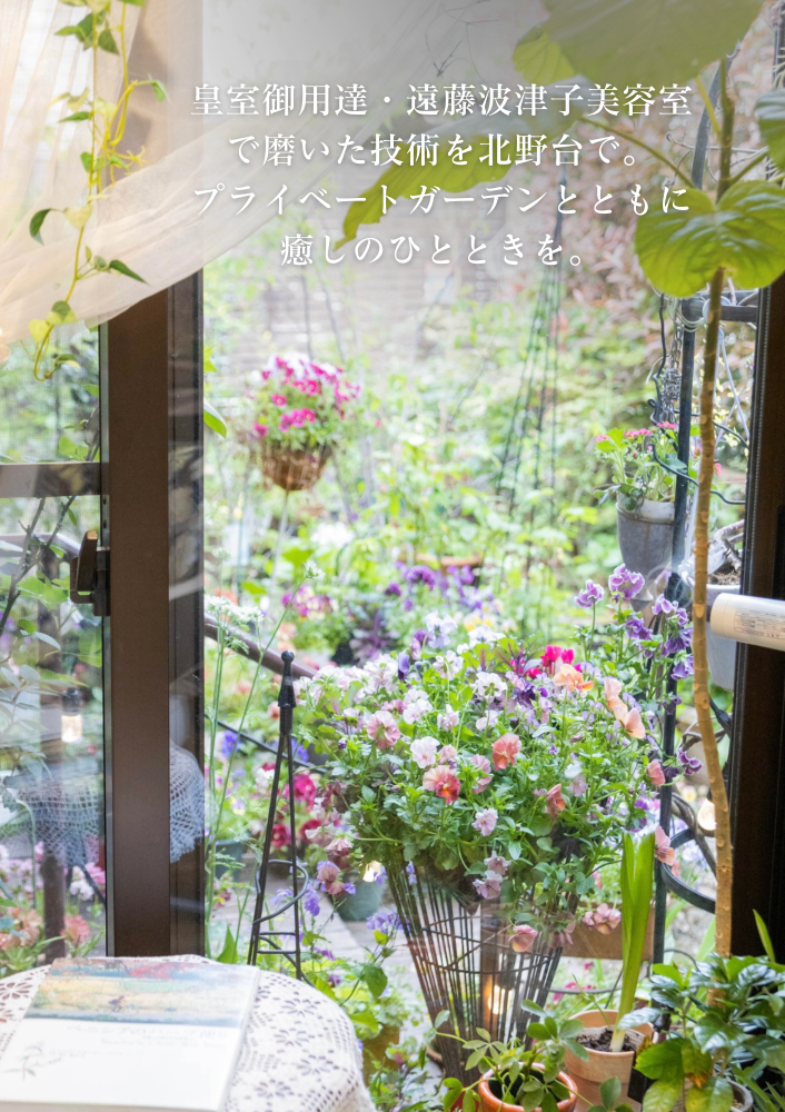 長年、名門百貨店内のサロンにおいて、上質なサービスと妥協のない技術を追求してまいりました。現在は、八王子の静かな住宅街にて、完全予約制のプライベートサロンを営んでおります。